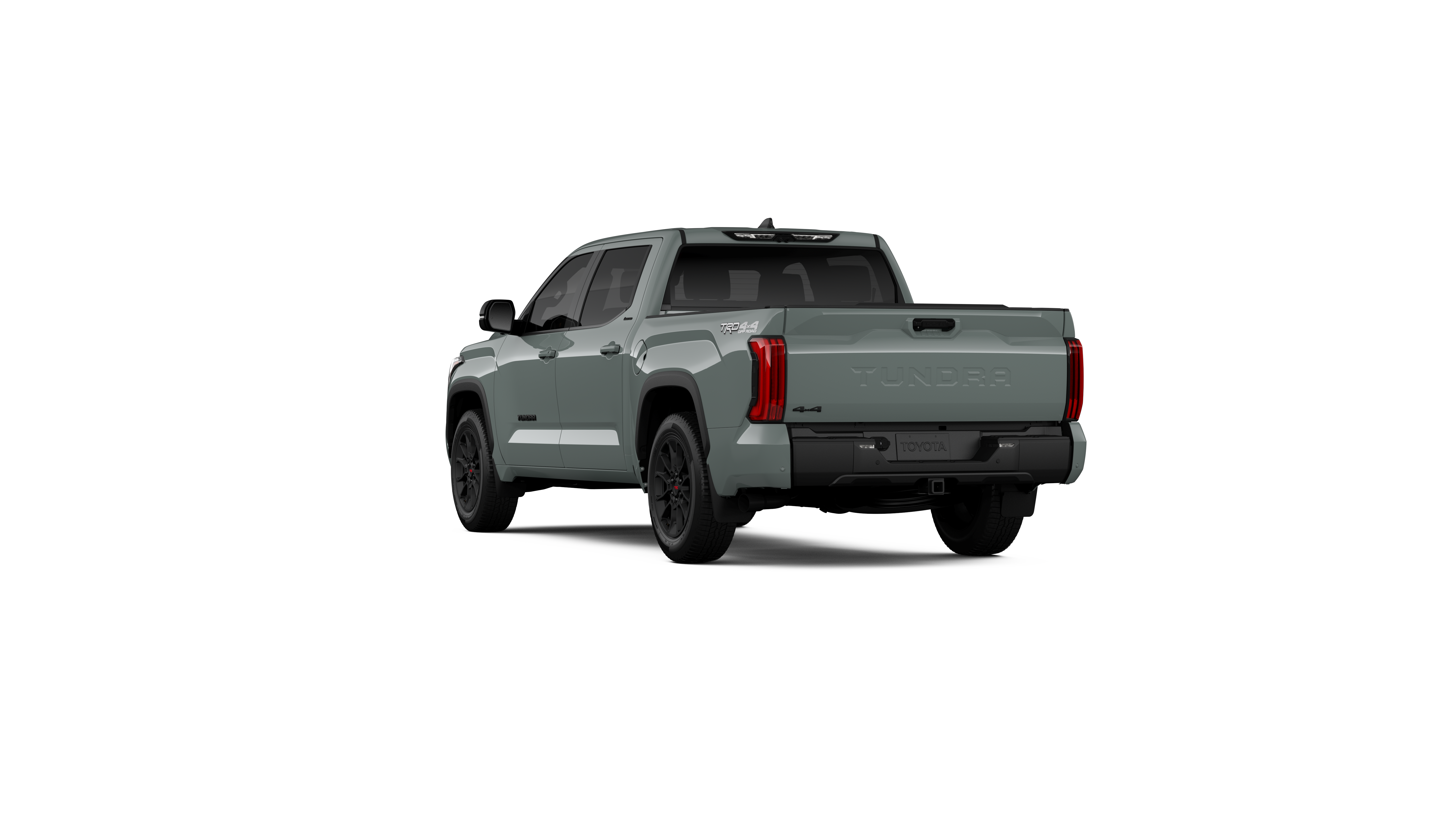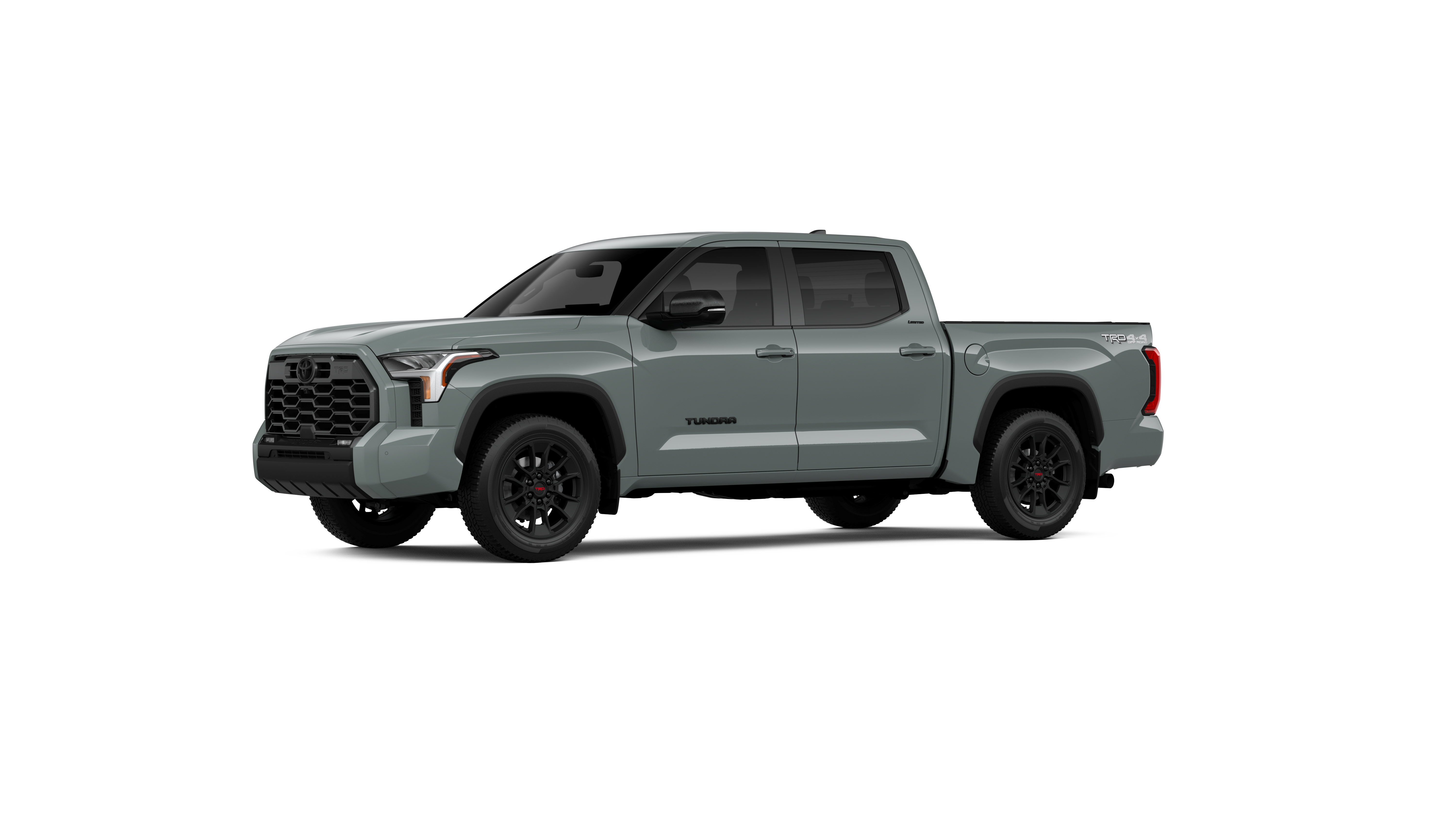- Chrome "TUNDRA" and "LIMITED" door badges, door handles and window molding; color-keyed mirror caps and tailgate spoiler; gray-painted overfenders